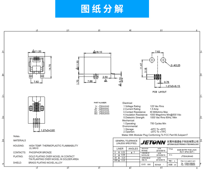 RJ12電話插座 RJ11貼片插座